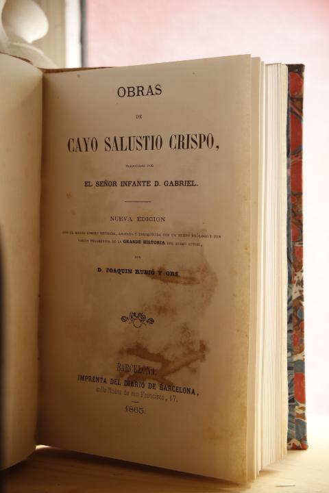 Publicado: Barcelona: Imprenta del Diario de Barcelona, 1865 Autor: Cayo Salustio Crispo Título: Obras. Información adicional: 8vo. 1 retrato en cromo adherido a contraportada + LV pp. + 311 pp. Encuadernación holandesa reciente con nervios en lomo, hierros... Perfecto estado.