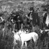 Pareja de fotografías. Escena de cacería en Andalucía. Hacia 1900. Negativo Caza