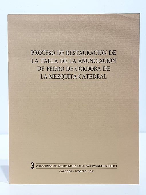 Publicado: Córdoba: Junta de Andalucía 1991 Título: Proceso de restauración de la tabla de la Anunciación de Pedro de Cordoba de la Mezquita-Catedral. Encuadernación: Rústica Estado: Nuevo Información adicional: 4to. 24 pp. Rústica, ilustrado.