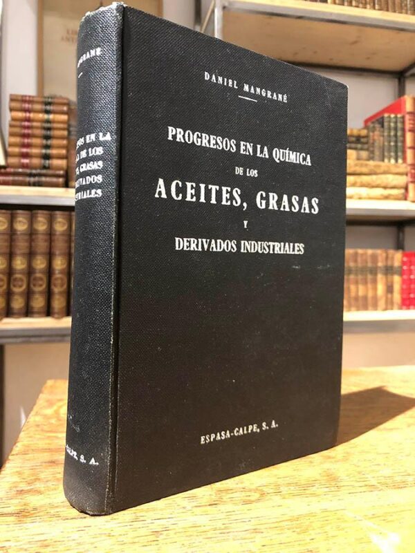 Publicado: Madrid: Espasa-Calpe, 1944 Autor: MANGRANÉ, Daniel. Título: Progresos en la química de los aceites, grasas y derivados industriales. Encuadernación: Encuadernación de tapa dura Estado: Muy bien Información adicional: 4to. 974 pp. Tela editorial estampada en perfecto estado, sin apenas marcas de uso. Sin nombres, subrayados o defecto alguno.