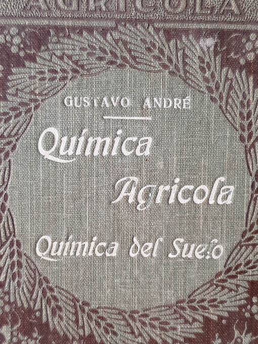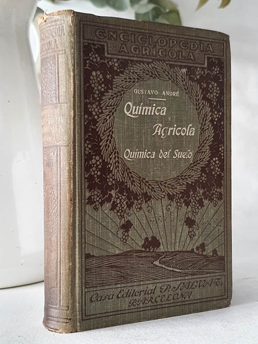 Publicado: Barcelona: Casa Editorial P. Salvat 1918 Autor: ANDRÉ, Gustavo. Título: Química Agrícola. Química del suelo. Enciclopedia Agrícola. Encuadernación: Encuadernación de tapa dura Estado: Bien Información adicional: 8vo. viii pp. + 570 pp. Encuadernación tela editorial estampada. Lomo un poco rozado, en buen estado general.