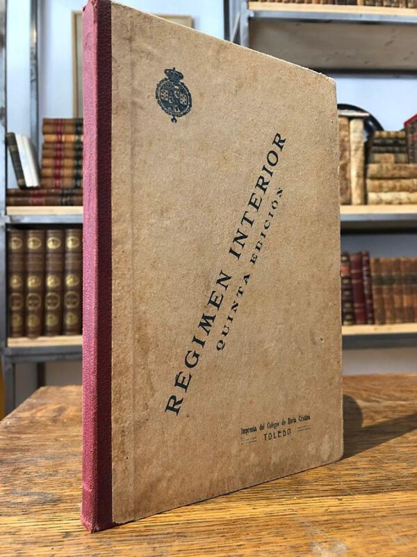 Publicado: Toledo: Imprenta y Encuadernación del Colegio de María Cristina, 1919 Autor: DURAN ARRIAZA, Antonio. [Recop.] Título: Reglamento Provisional para el detall y régimen interior de los Cuerpos de Ejército. Aumentada con extractos de las disposiciones que han anulado o modificado muchos de sus preceptos y con las funciones asignadas a los cargos por el Reglamento de Contabilidad. Encuadernación: Encuadernación de tapa dura Estado: Aceptable Información adicional: 4to. VIII pp. + 283 pp. Cartoné editorial un poco fatigado.