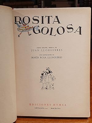 Publicado: Barcelona: Ediciones Hymsa ca. 1940 Autor: LLONGUERES, Juan (texto). LLONGUERES, María Rosa (ilustr.) Título: Rosita golosa Encuadernación: Encuadernación de tapa dura Estado: Muy bien Información adicional: Folio, 32 pp. Holandesa tela-cartoné editorila ilustrada. En perfecto estado, ejemplar magnífico.