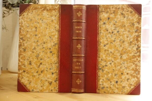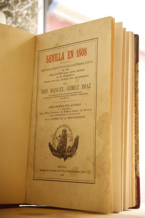 Publicado: Sevilla: Francisco P. Díaz, 1908 Autor: GOMEZ IMAZ, Manuel. Título: Sevilla en 1808. Servicios patrióticos de la Suprema Junta en 1808 y relaciones hasta ahora inéditas... Encuadernación: Encuadernación de tapa blanda Estado: Muy bien Información adicional: 4to. XII pp. + 491 pp. + 3 hojas. Encuadernación de época en media piel con puntas. Conserva las cubiertas originales. Muy buen estado.