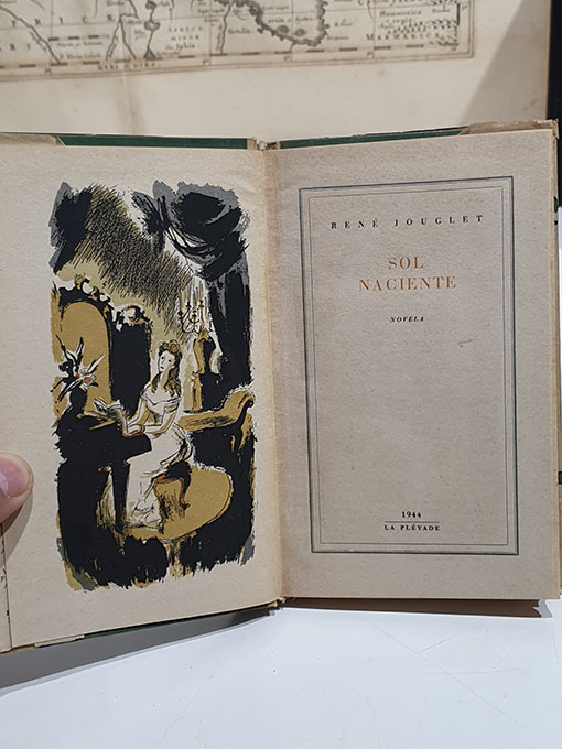 Publicado: Barcelona: Colección La Pléyade 1944 Autor: Jouglet, René. Título: Sol naciente. Encuadernación: Encuadernación de tapa dura Estado: Bien Información adicional: 8vo. 1 litografía + 180 pp. + 2 h. Cartoné editorial, sobrecubiertacon algunas roturitas, en buen estado.