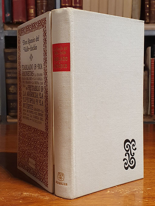 Publicado: Madrid: Aguilar 1970 Autor: VALLE-INCLAN, Ramón del Título: Tablado de marionetas para educación de Príncipes. Retablo de la avaricia, la lujuria y la muerte Encuadernación: Encuadernación de tapa dura Estado: Bien Información adicional: 8vo. 350 pp. + 2 h. Tela editorial con sobrecubierta. Esta un poco ajada.