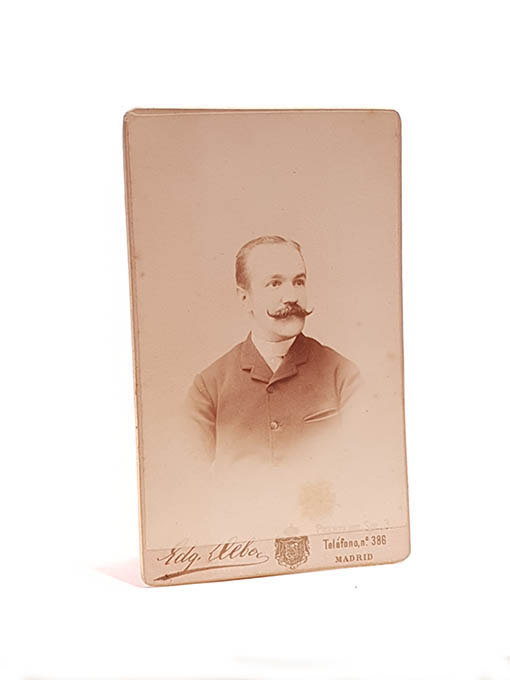 Tarjeta de visita de Manuel Guisado. Edgardo Debas. 1887. Madrid Puerta del Sol, 3.