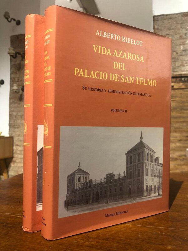 Publicado: Sevilla: Marsay Ediciones, 2001 Autor: RIBELOT, Alberto. Título: Vida azarosa del Palacio de San Telmo. Su historia y administración eclesiástica. Encuadernación: Encuadernación de tapa dura Estado: Muy bien Información adicional: 4to. I: 266 pp. + 3 hojas + lám. II: 569 pp. + 2 h. + lám. Guaflex editorial con sobrecubierta. Impecable estado.